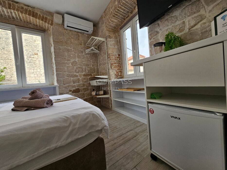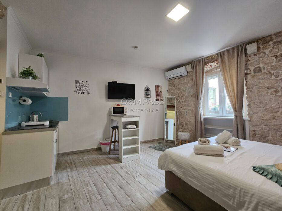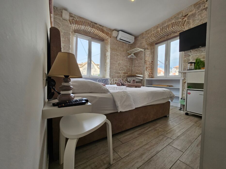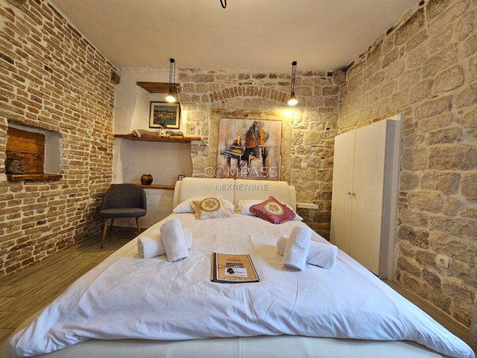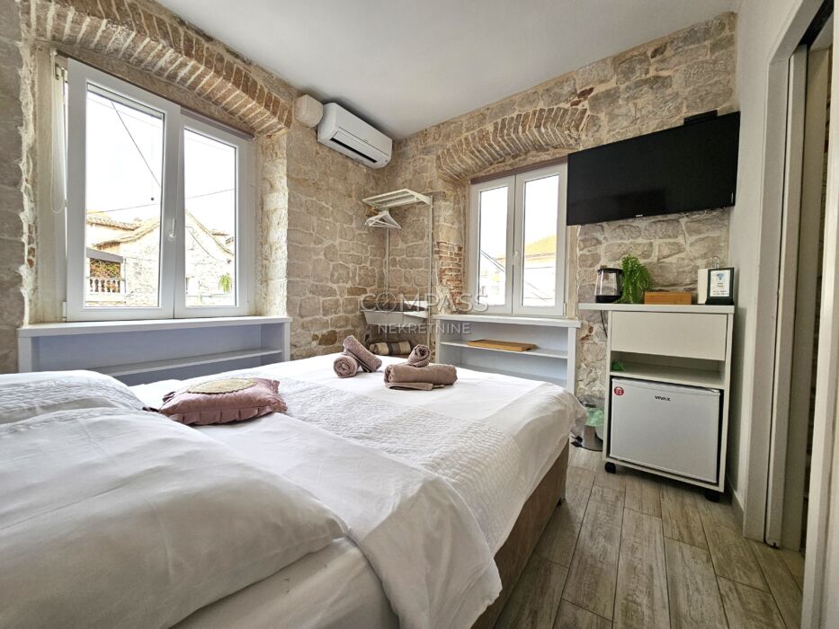 Wir vermitteln den Verkauf eines Zimmers, eines Studioapartments und einer Einzimmerwohnung in einem komplett renovierten Steinhaus im Zentrum von Trogir. Alle drei Einheiten wurden vollständig renoviert und kategorisiert und erzielen in der Saison hervorragende Einnahmen. Die Renovierung umfasste neue Böden, Wände, elektrische Installationen, Sanitäranlagen, Türen, Fenster und Möbel.