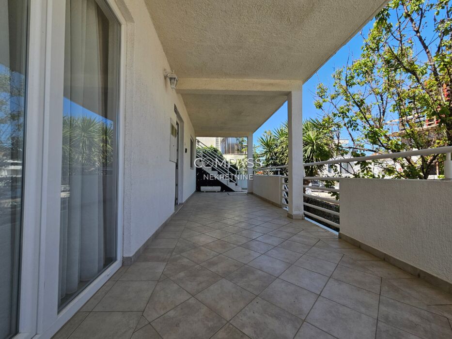 Al piano terra si trova un ampio appartamento con due camere da letto (letti matrimoniali), soggiorno, cucina, sala da pranzo e bagno. Davanti si trova una terrazza di 25 m².