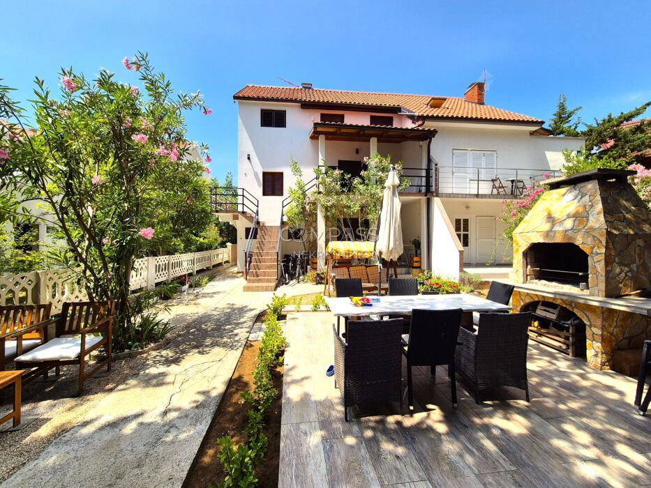 Kuća se sastoji od šest apartmana raspoređenih na tri etaže, kao i dodatnog studio apartmana u dvorištu. Svi apartmani su potpuno opremljeni i spremni za korištenje, a objekt je redovito održavan. Prostrano dvorište s roštiljem i sjenovitim dijelovima pruža ugodan prostor za opuštanje na otvorenom.