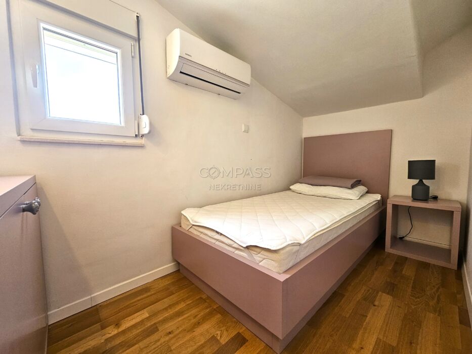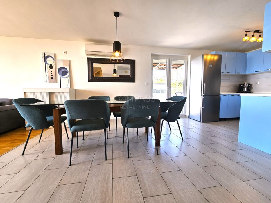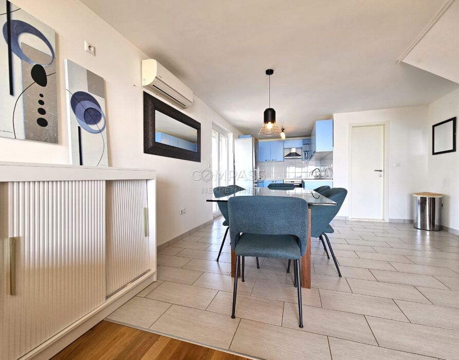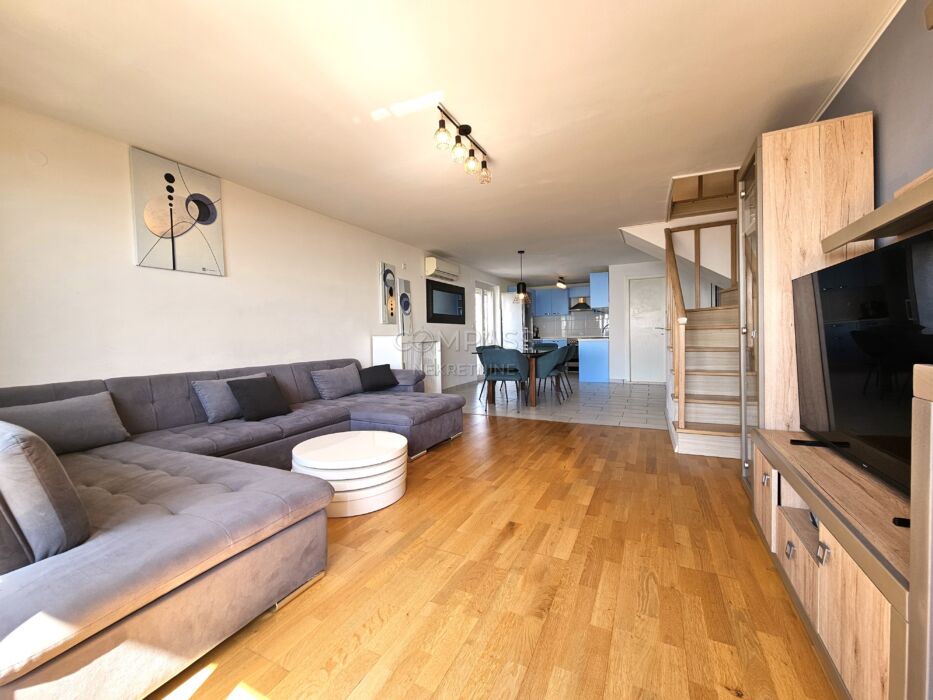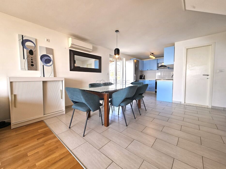 Posredujemo u prodaji trosobnog penthousea u stambenoj zgradi na Žnjanu. Stan se prostire na dvije etaže. Na prvoj etaži nalazi se prostrani open space dnevni dio s kuhinjom, blagovaonicom, kupaonicom i dva balkona s otvorenim pogledom na more i otoke. Na drugoj etaži smještene su tri spavaće sobe, kupaonica i terasa s panoramskim pogledom na more. Stanu pripada i vanjsko parkirno mjesto odmah uz zgradu. Nekretnina se nalazi u neposrednoj blizini prekrasnih plaža, ugostiteljskih objekata i svih sadržaja potrebnih za svakodnevni život. Stan je kategoriziran, ostvaruje odlične prihode i predstavlja izvrsnu priliku za investiciju, kao i idealan dom za obitelj. Za razgledavanje nas kontaktirajte na +385 91 607 56 27 ili pošaljite upit na [email protected].