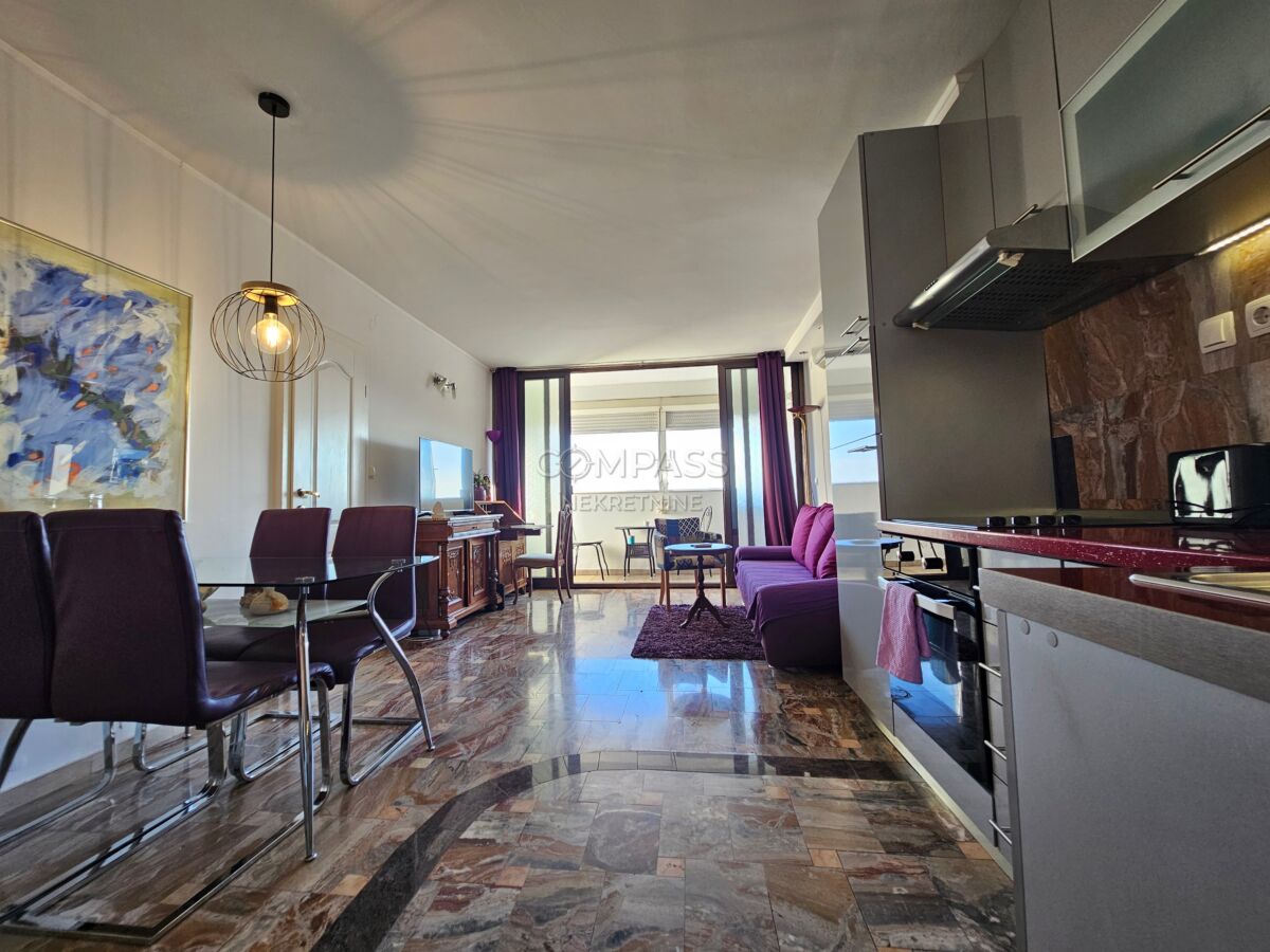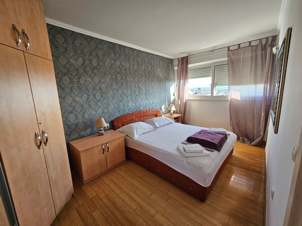 Чудова квартира доступна для довгострокової оренди на вулиці Лічка у Спліті, на останньому (восьмому) поверсі житлового будинку. Орієнтована на захід, наповнена денним світлом, з відкритим видом, повністю мебльована.